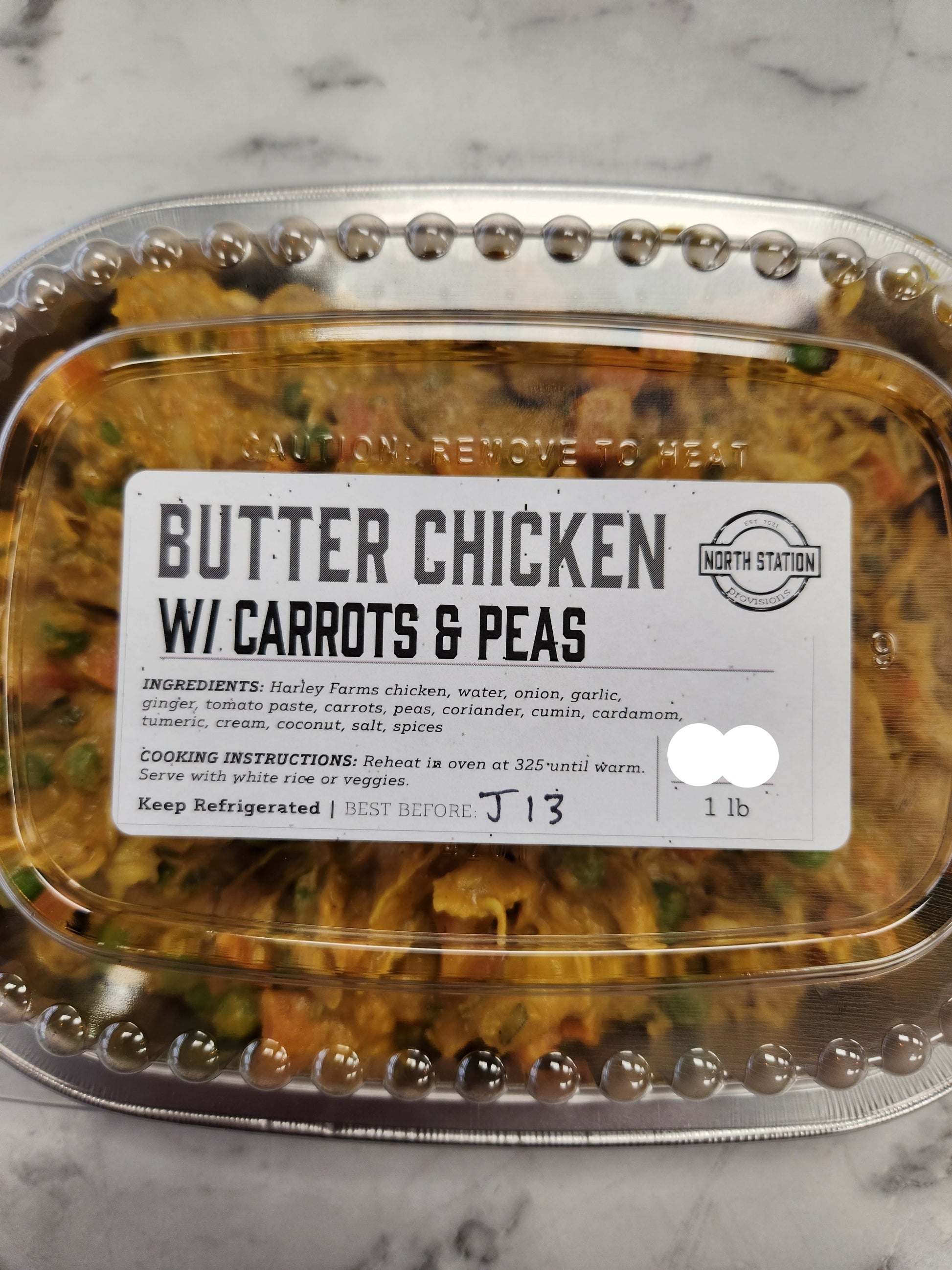 Butter Chicken w/ Carrots & Peas (1lb)